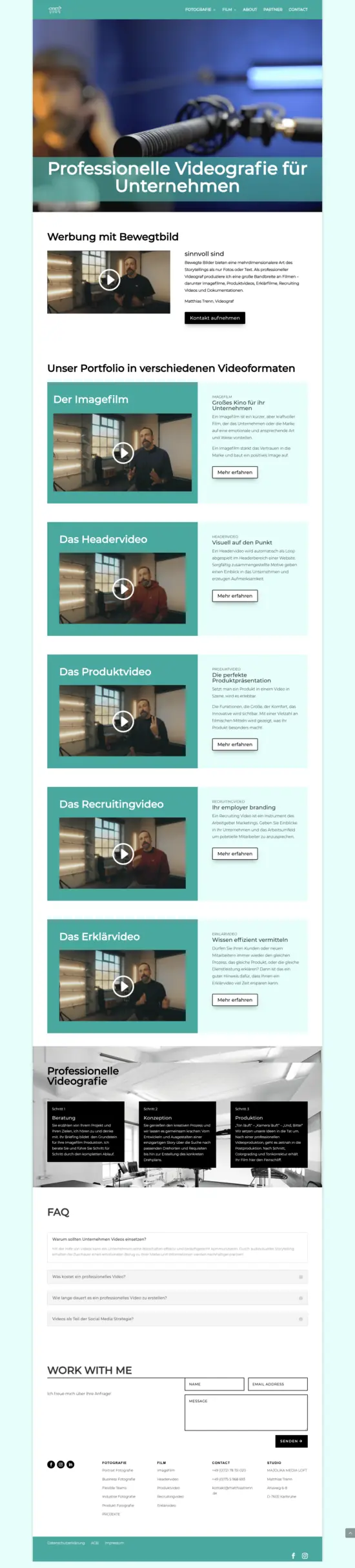 Erweiterung des Leistungsbereichs „Film“ durch detaillierte Landingpages.
