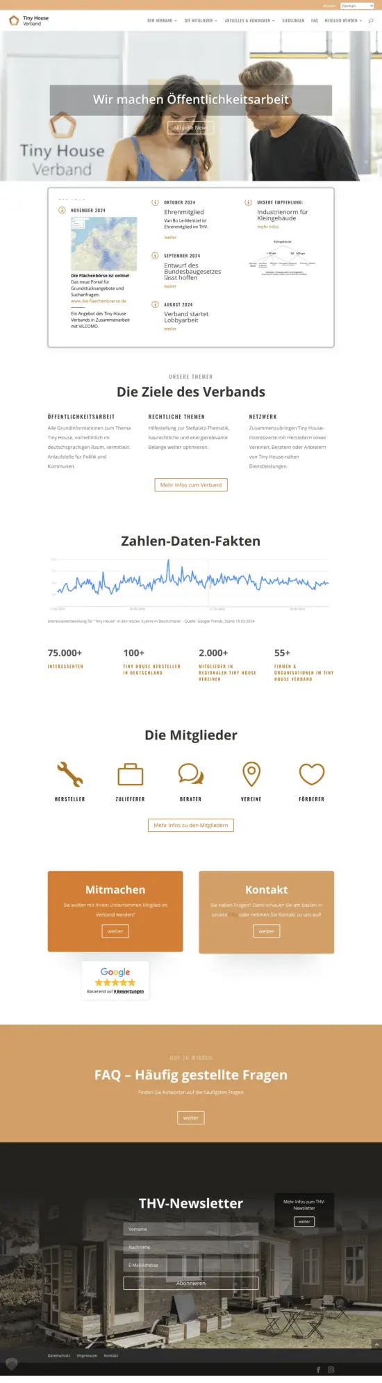 Website für neu gegründeten, bundesweit aktiven Tiny-House-Verband e.V.